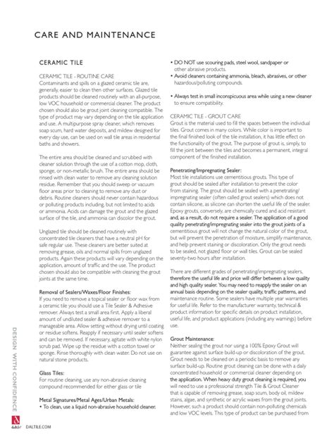 Daltile Maintenance Pdf. Web take care to avoid exposing porcelain to permanent inks or dyes, as these might not be removable. Web routine care and cleaning.