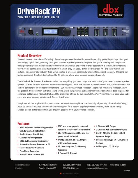 Dbx type iv™ conversion system driverack px dynamic range: The following are just some of the features of the. Web before you return a product to the factory for service, we recommend you refer to the manual.