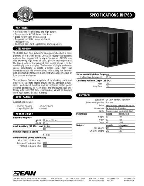 Eaw Bh760 Speaker User Manual. And as a bass supplement to any audio system. Web find the user manual you need for your audio device and more at manualsonline.